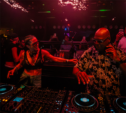 Anna Tur and Carl Cox during their back-to-back set of over two hours, held to celebrate the 4th Anniversary of The Bassement club (Madrid).