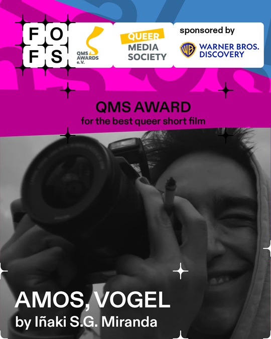 Der mit 2.000 Euro dotierte QMS Award für den besten queeren Kurzfilm geht wettbewerbsübergreifend dieses Jahr an AMOS, VOGEL von Iñaki S.G. Miranda (SAE Institute México) und wurde von der divers besetzten fünfköpfigen Jury (Yun Huang, Brix Schaumburg, Letícia Milano, Marian Freistühler und Melissa Byrne) verliehen. Preisstifter ist die Queer Media Society, gesponsert wird der Preis von Warner Bros. Discovery Deutschland. Eine Special Mention spricht die Jury aus an WHOEVER DESERVES IT, WILL BE IMMORTAL von Nay Mendl (EICTV, Kuba).