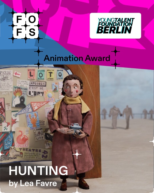 Der Preis für die Beste Animation geht dieses Jahr – ebenfalls wettbewerbsübergreifend – an HUNTING von Lea Favre (ECAL, Schweiz). Der Preis wird gefördert durch die Young Talent Foundation Berlin und ist mit 3.000 Euro dotiert. Die Jury sprach außerdem zwei Special Mentions aus: an DEATH’S PEAK von Willy Fair (NFTS, UK) und an LIFE IS LIKE THAT AND NOT OTHERWISE. von Lenia Friedrich (KHM Köln).