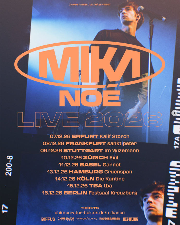 .Als er mit siebzehn Abitur macht, liegt bereits die im Alleingang erarbeitete Skizze »vermiss nicht mehr« – ein Lied, in dem er surreal offenherzig von seinen Beklemmungen und Schwächen berichtet – in Mikas Schreibtischschublade. Kaum erreicht »vermiss nicht mehr« bruchstückhaft das Internet, geht der Song viral. Ab jetzt vergeht nur noch wenig Zeit, bis Mika Noé in aller Munde ist, bei Unreleased Berlin auf der Bühne steht und als Feature-Gast auf Savvy’s Album »Pass auf dich auf« in Erscheinung tritt. Im Frühjahr letzten Jahres erscheint mit »Therapiebericht« seine Debüt-EP – ein mutiges da durch und durch intimes Projekt, das Mika in der Rückschau als Nährboden seiner Karriere beschreibt.